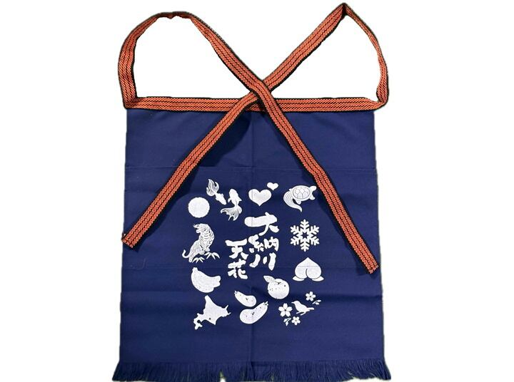 大納川天花の前掛けを付けて、あなたも大納川ファミリーの一員に!!